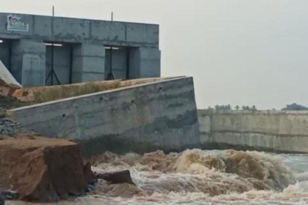 தொடர் மழை காரணமாக விழுப்புரம் மாவட்டம் தளவானூர் அணையில் ஏற்பட்ட உடைப்பின் காரணமாக அங்கிருந்து நீர் வெளியேறிய வண்ணம் உள்ளது
